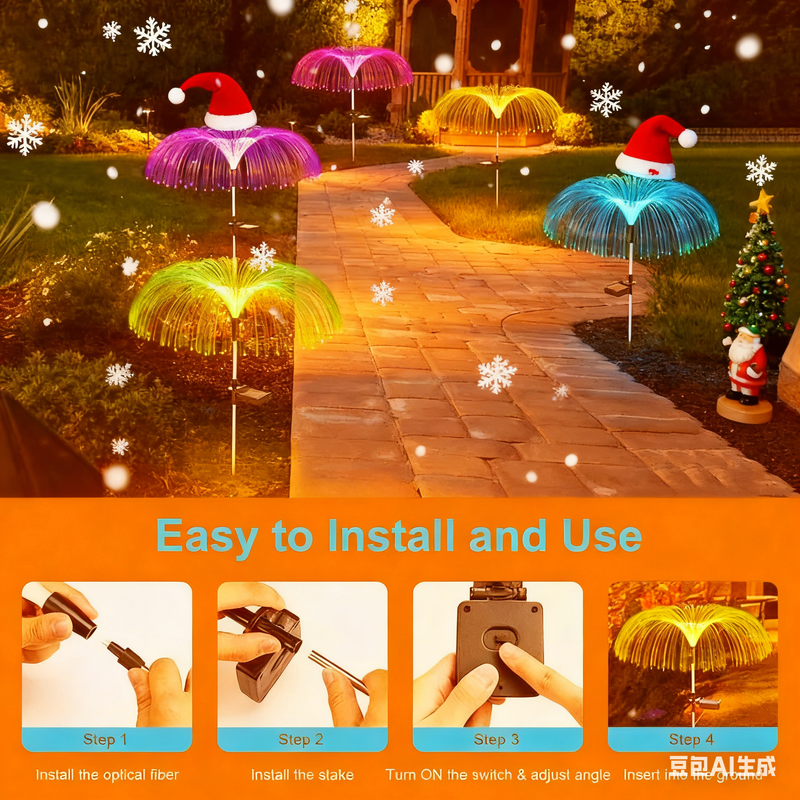 The outdoor solar garden lights are designed in a unique jellyfish shape and are made of high-quality plastic and components. Corrosion resistance, strong light transmission, durable.