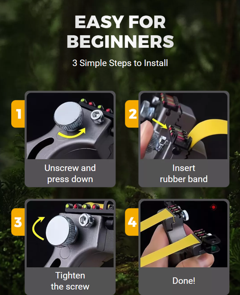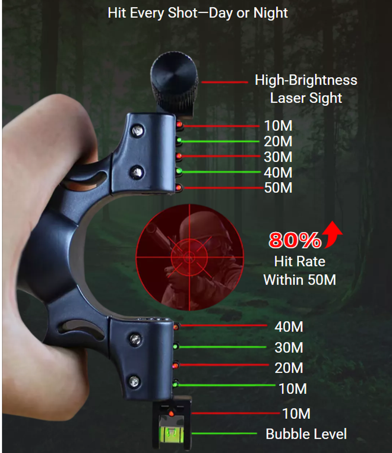 Featuring an advanced laser targeting system, this slingshot ensures precise aim every time, while its ergonomic resin design offers a comfortable grip for extended use.